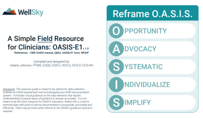 This 100-page field resource is meant to be utilized for data collection DURING an OASIS assessment visit and alongside your EHR/documentation system. It includes visual guidance on the data elements that require understanding of several layers of guidance to answer accurately.