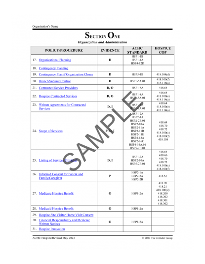 The ACHC Hospice Policies and Procedures manuals are based on CMS Conditions of Participation, and Accreditation Commission for Health Care (ACHC) standards.