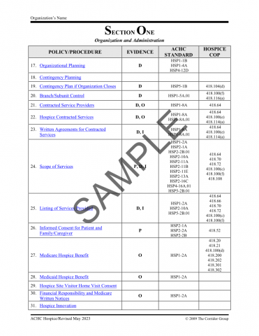 The ACHC Hospice Policies and Procedures manuals are based on CMS Conditions of Participation, and Accreditation Commission for Health Care (ACHC) standards.