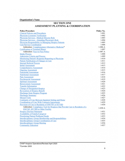 The CHAP Hospice Policies and Procedures manuals are based on CMS Conditions of Participation, and CHAP standards.